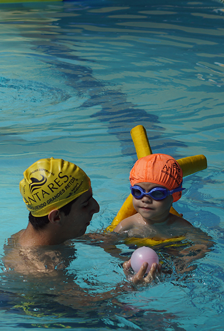 Ejercicios con mayor confianza dentro del agua. Reducir el grado de apoyo del instructor. El niño se desplazará más ágil y mejorará su flotación.